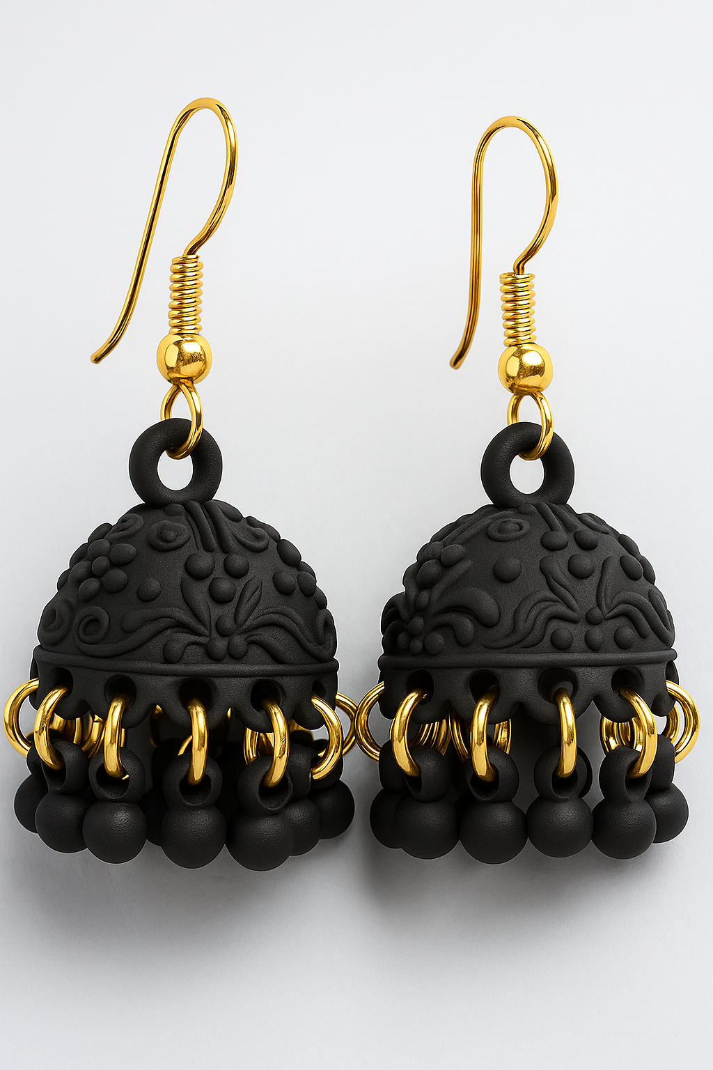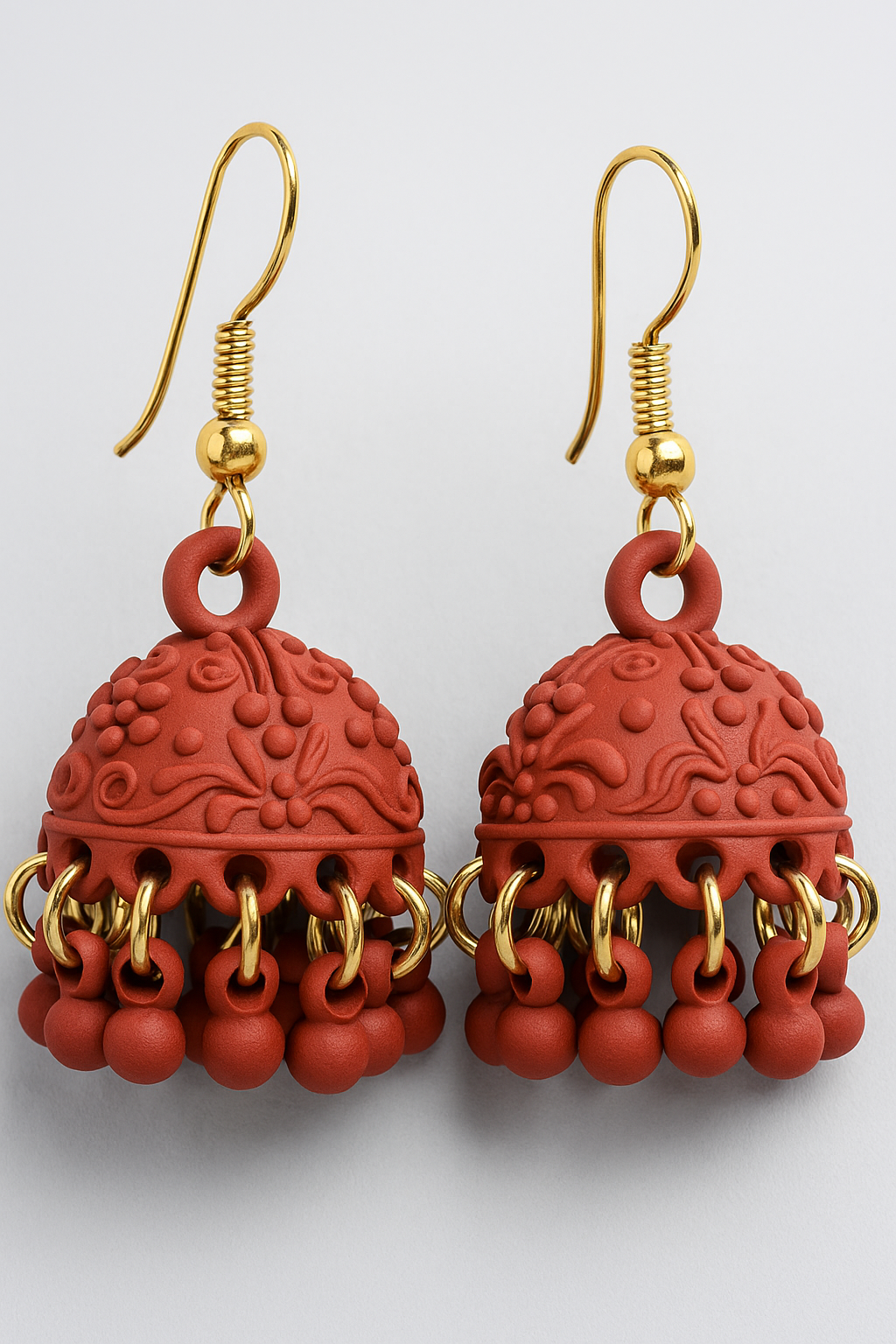 Timeless handcrafted jhumka earrings that blend tradition with modern charm. Featuring elegant dome artistry and golden accents, these earrings are perfect for weddings, parties, or everyday elegance.